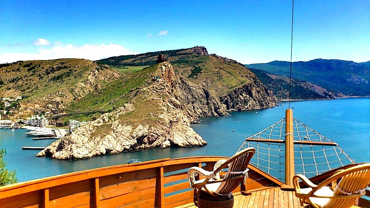 Ресторан выполнен в виде большого деревянного корабля. С открытой террасы - носа корабля открывается вид на Балаклавскую бухту.
