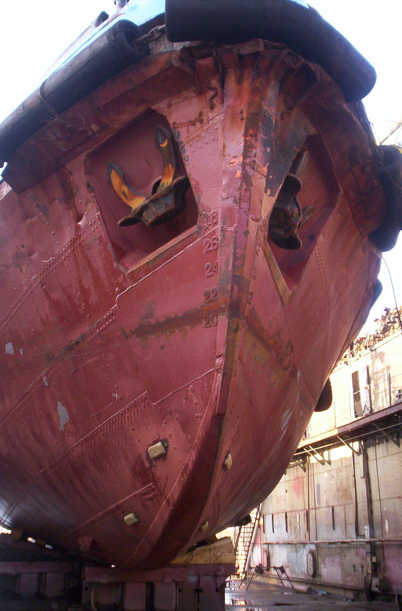 Однажды проходя вдоль строящегося причала на полном ходу буксир натолкнулся на что-то и аж подпрыгнул. В корме что-то грохнуло, и мы встали. Двигатель тарахтит, а хода нет. Прибегает на мостик дед и орёт, что ГД чуть в разнос не пошёл. Вовремя аварийно заглушили. Стали думать и гадать. Первое, что пришло на ум, это потеря винта или лопастей. Глубины на карте показаны весьма приблизительно и на дне могло находиться что угодно. Тем более что грунт для причала насыпали шаландами. Заодно проверили редуктор и линию вала. Оказалось, всё в порядке. Доложили хозяину, а тот заказал водолазный осмотр.