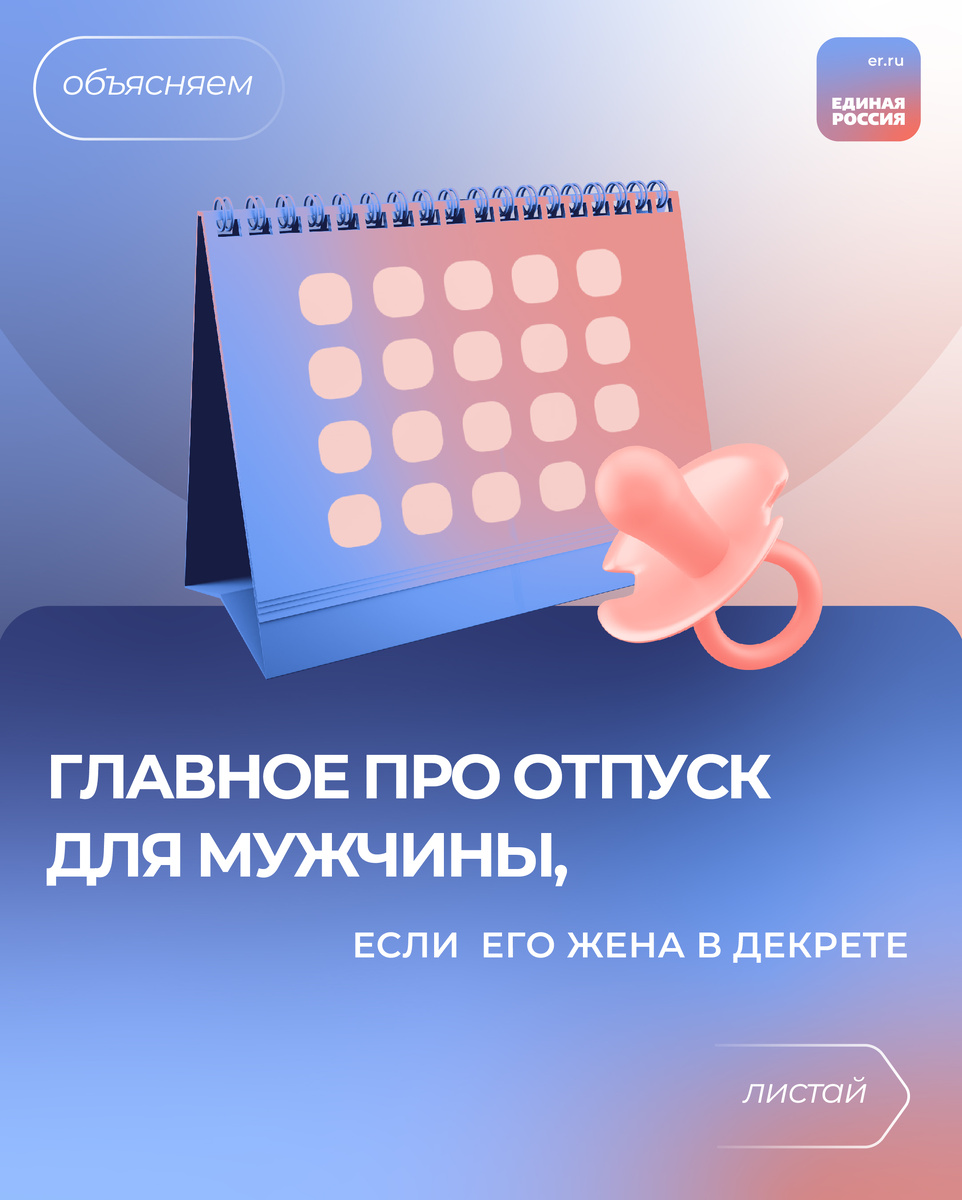 Если жена сотрудника находится в отпуске по беременности и родам, то он в любой момент может оформить очередной отпуск — до или после рождения ребенка. Также он имеет право взять до 5 дней отпуска за свой счет. Всю информацию об этом собрали для вас в наших карточках. Листайте.