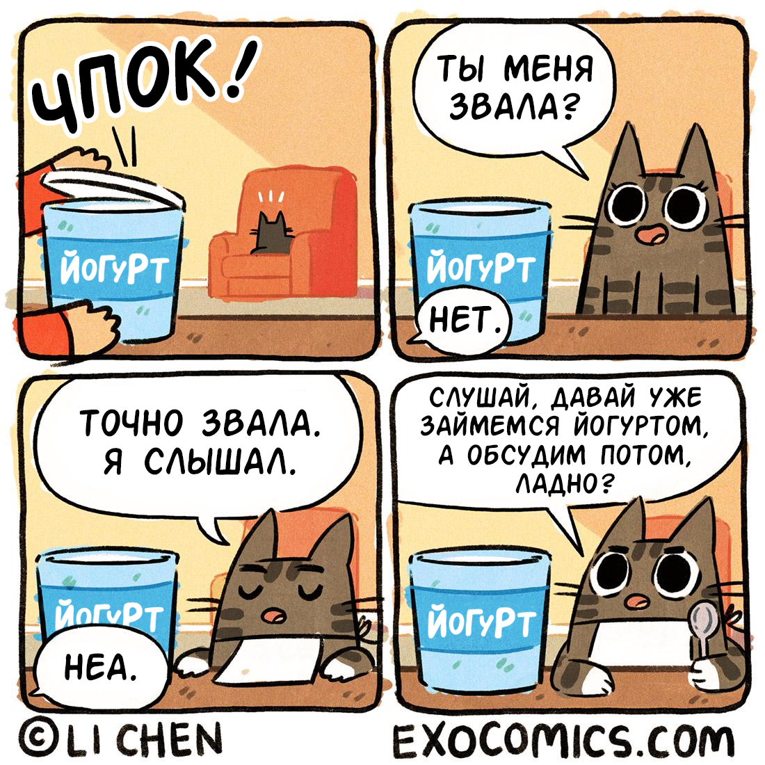 Если не знаешь, о чем творить, всегда можно вдохновиться окружающим миром. Сюжеты, шутки, образы так и витают вокруг, остается лишь только их заметить. Да и подходящего персонажа тоже вполне можно найти поблизости. К примеру, главная героиня сегодняшней статьи в какой-то момент решила понаблюдать за своим котом и в итоге превратила все его выходки в забавные комиксы. В итоге получилось очень жизненно и смешно! Надеюсь, что эти комиксы понравятся и вам! Новозеландская художница китайского происхождения по имени Ли Чен (Li Chen) рисует комиксы c 2009 года - изначально это было просто хобби, но потом превратилось в полноценную работу. Ее главный и самый известный проект называется Extra Ordinary Comics (англ. «Экстраординарные комиксы») - это юмористические черно-белые комикс-стрипы о забавном мире, в котором вместе с людьми живут роботы и говорящие животные. Также в 2024 году был издан графический роман Ли Чен под названием «Детектив Бинс и дело о пропавшей шляпе» (Detective Beans and th
