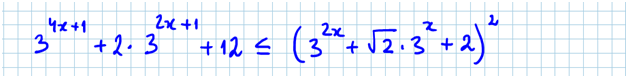 Решить неравенство Условие заставляет настораживает нехорошими предчувствиями, но первый очевидный шаг – сделать стандартную замену переменной Тогда: Получаем: Если дальше решать «в лоб», то надо раскрыть скобки в правой части неравенства перенести все в одну сторону, привести подобные слагаемые и решать полученное неравенство методом интервалов. При этом получится выражение 4 степени и с ним придется «попотеть» У некоторых могут возникнуть трудности с возведением в квадрат суммы трех слагаемых. Поэтому сразу обсудим этот вопрос. Для тех, кто не знает соответствующую формулу надо воспользоваться определением степени: Но, все-таки, полезно и готовую формулу знать на память Т.е. квадрат суммы равен сумме квадратов каждого слагаемого плюс удвоенные попарные произведения всех слагаемых Решение «в лоб» приводит к сложному выражению, поэтому хочется придумать другой способ решения Заметим, что в левой части можно вынести общий множитель 3 за скобки: Выражения в скобках похожи, слагаемые слев