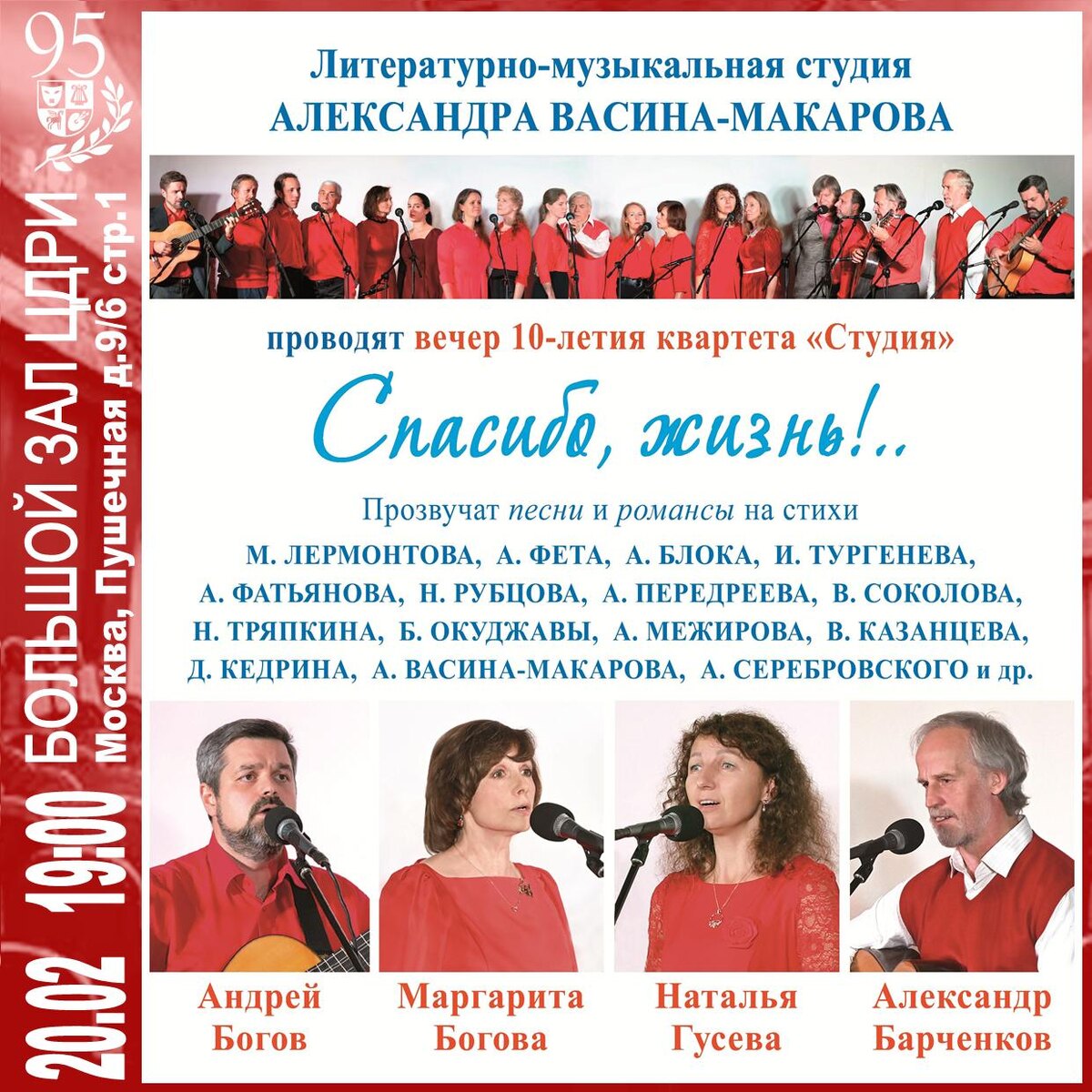 Юбилейный вечер квартета «Студия» — «Спасибо, жизнь!..» Литературно-музыкальная студия Александра Васина-Макарова Вечер 10-летия квартета.