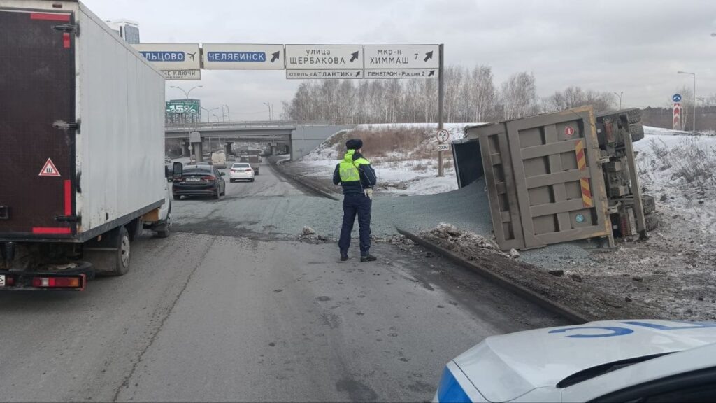 В Екатеринбурге на объездной дороге перевернулся грузовик