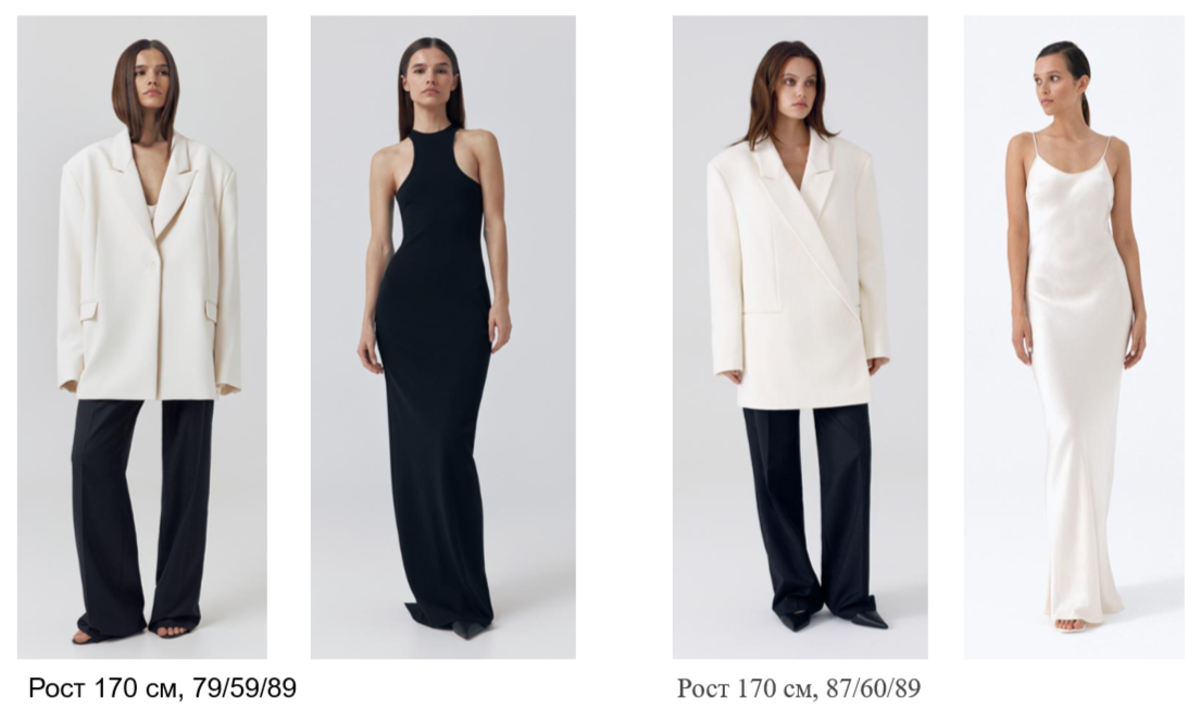 Добрый день! Сегодня я хотела бы поговорить про жакеты, которые, по мнению стилистов, являются обязательной частью гардероба. Жакеты в этом случае предлагаются удлиненные, либо прямые, либо оверсайз. Предполагается, что женщина в таком жакете выглядит "хрупкой и беззащитной". Я не зря взяла эти эпитеты в кавычки, так как дернула это описание из статей стилистов про жакеты. Теперь давайте оставим моду в покое и посмотрим, кому действительно идут жакеты с точки зрения роста, фигуры и линейности внешности. Типаж я здесь в расчет не беру, так как этим очень усложним статью в части примеров для каждого типажа. Давайте начнем с роста человека. Основная задача для гармоничного образа состоит в соблюдении пропорций нижней части тела к верхней (3/5:2/5). Посмотрим, как трендовый жакет смотрится на модели с ростом 170 см. Это 2 разные модели, если что. Анализируя образы, мы видим: Из плюсов: 1) комплекты с жакетом модные, трендовые. Ахроматическая цветовая гамма. Из минусов: 1) модели, размер ко