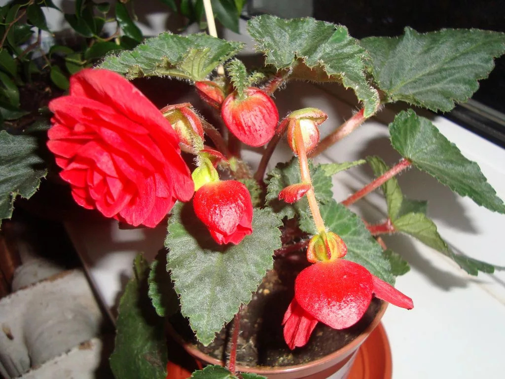 - Клубневые бегонии: Ценятся за крупные, яркие цветы. Требуют периода предстоящей зимы.