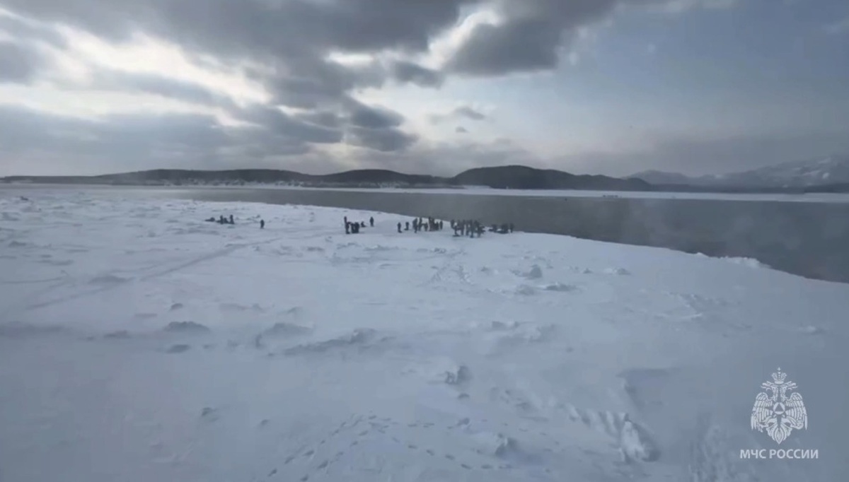 В южной части Сахалина от берега оторвало льдину, на которой находятся 300 рыбаков. Людей уносит в сторону Охотского моря. Причиной происшествия стала огромная трещина, образовавшаяся во льду.