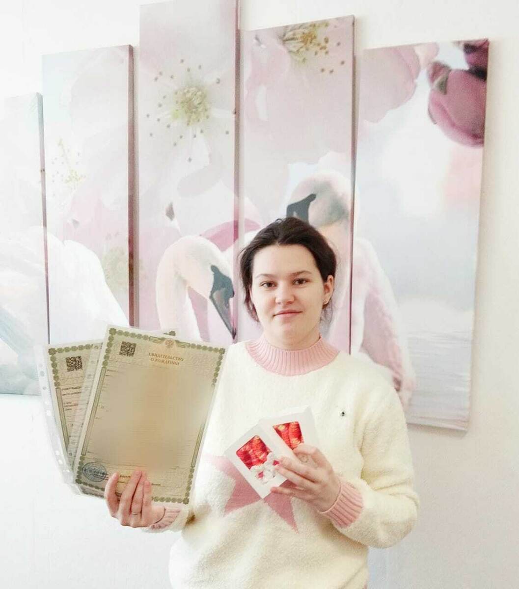 Начальник отдела ЗАГС Руфина Фаизова вручила первые документы новорожденным и символические подарки.
