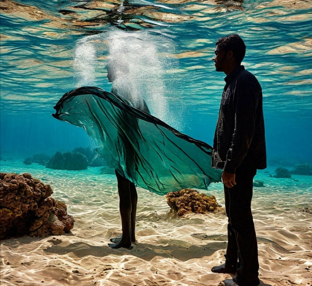 | Кто-то из ребят начал рассказывать о том, как глубоко он нырнул и как ему удалось запулиться в ярко изумрудную зелёную бездну, опускаясь всё ниже и ниже на светлое дно этой лагуны. Я прожила этот полёт в воде вместе с ним. Мне удалось увидеть то, как его Тело заходит в воду глубоко вниз, словно спускаясь по воздушной горке, встречаясь прямо с песочным дном. Мимо нас прошло большое и тёмное морское существо сине-зелёного цвета. Прошагало как эластичное белье, развивается на ветру. Но здесь оно надувалось от воды. Это очень интересное смешение нескольких стихий под толщей океана, где также есть воздух, ветер, гравитация и невесомость одновременно. Новая атлантида, скажете вы? Возможно, да. Здесь очень много уважения друг к другу. И тот юноша, который рассказывает мне о своих классных танцевальных постановках там, наверху, возле школы. Он знает, что он рассказывает самое сокровенное. То, что принесло ему огромнейшую радость, как никогда в его жизни, и он рассказывает об этом перед тем,