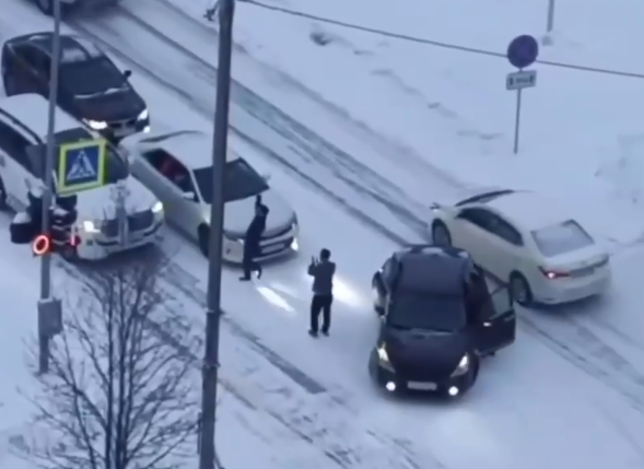 На одной из улиц Ноябрьска свадебное торжество внезапно превратилось в шоу, которое больше напоминало уличные гонки с элементами этнического спектакля. Участники кортежа, забыв обо всех правилах дорожного движения, перекрыли дорогу и устроили импровизированную сцену прямо на проезжей части. Главным героем этого «представления» стал иноземец, который, чувствуя себя хозяином положения, вышел из машины и начал исполнять лезгинку посреди дороги. Машины сигналили, но участникам кортежа это казалось частью музыкального сопровождения. «Мы стояли на светофоре и вдруг увидели, как машины остановились, перегородив дорогу. Из одной из них выскочил парень и начал танцевать, а остальные поддерживали его криками и аплодисментами. Это было похоже на какой-то фестиваль, но явно неуместный», — вспоминает очевидец. На кадрах видно, как на перекрёстке улиц Высоцкого и Советской водитель и его друзья устроили шоу, полностью игнорируя правила дорожного движения. Поток машин оказался заблокирован, а возмущё