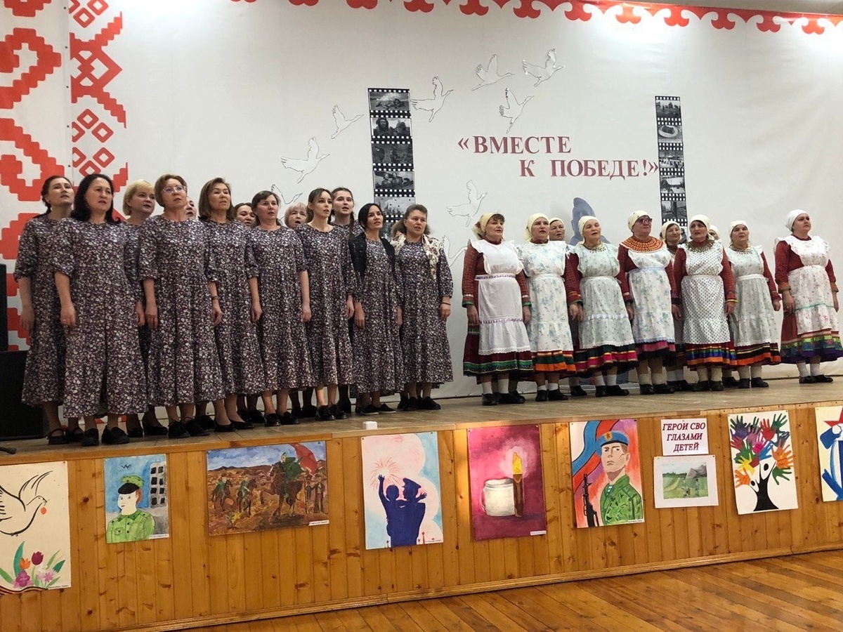 Песни и танцы военных лет в исполнении народного чувашского фольклорного ансамбля «Пилеш», вокального коллектива «Благозвучие» школы д.Ефрем