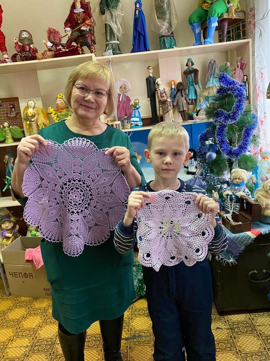 Есть молодые мамочки. Например, Дарья Кунафина. Она в декретном отпуске и до выхода на работу связала для проекта 22 салфетки, став настоящим рекордсменом по их количеству. Сейчас уже трудится, но про Иван-чайную скатерть не забывает, вяжет, когда есть время и силы.