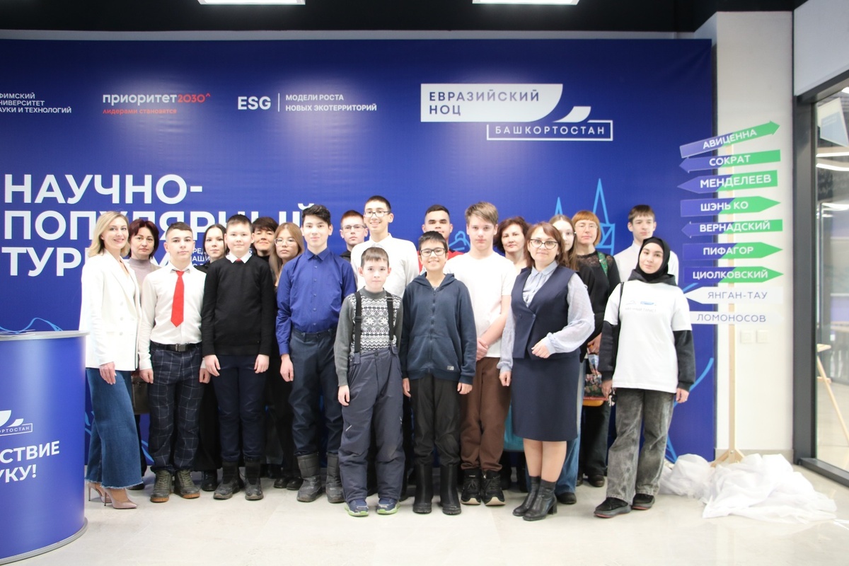 – В Башкортостане создаются практически тепличные условия для развития науки. Здесь живут и трудятся известные ученые мирового значения. Я желаю нашим школьникам выбрать одно из научных направлений и надеюсь, что сегодняшний маршрут будет очень полезным, – обратилась к ребятам заместитель директора Евразийского центра ESG и устойчивого развития УУНиТ Глюса Бакиева.