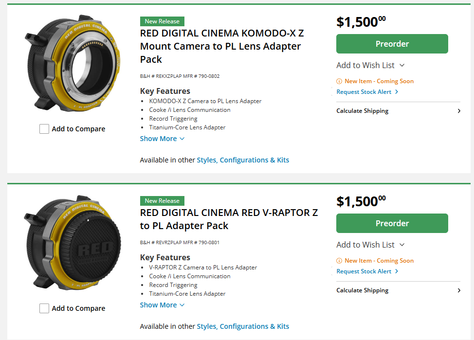 3500$ за переходник? RED анонсировала 4 новых адаптера Nikon Z на PL.