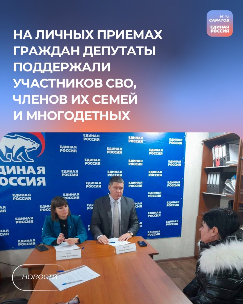 👥На личных приемах граждан депутаты поддержали участников СВО, членов их семей и многодетных
