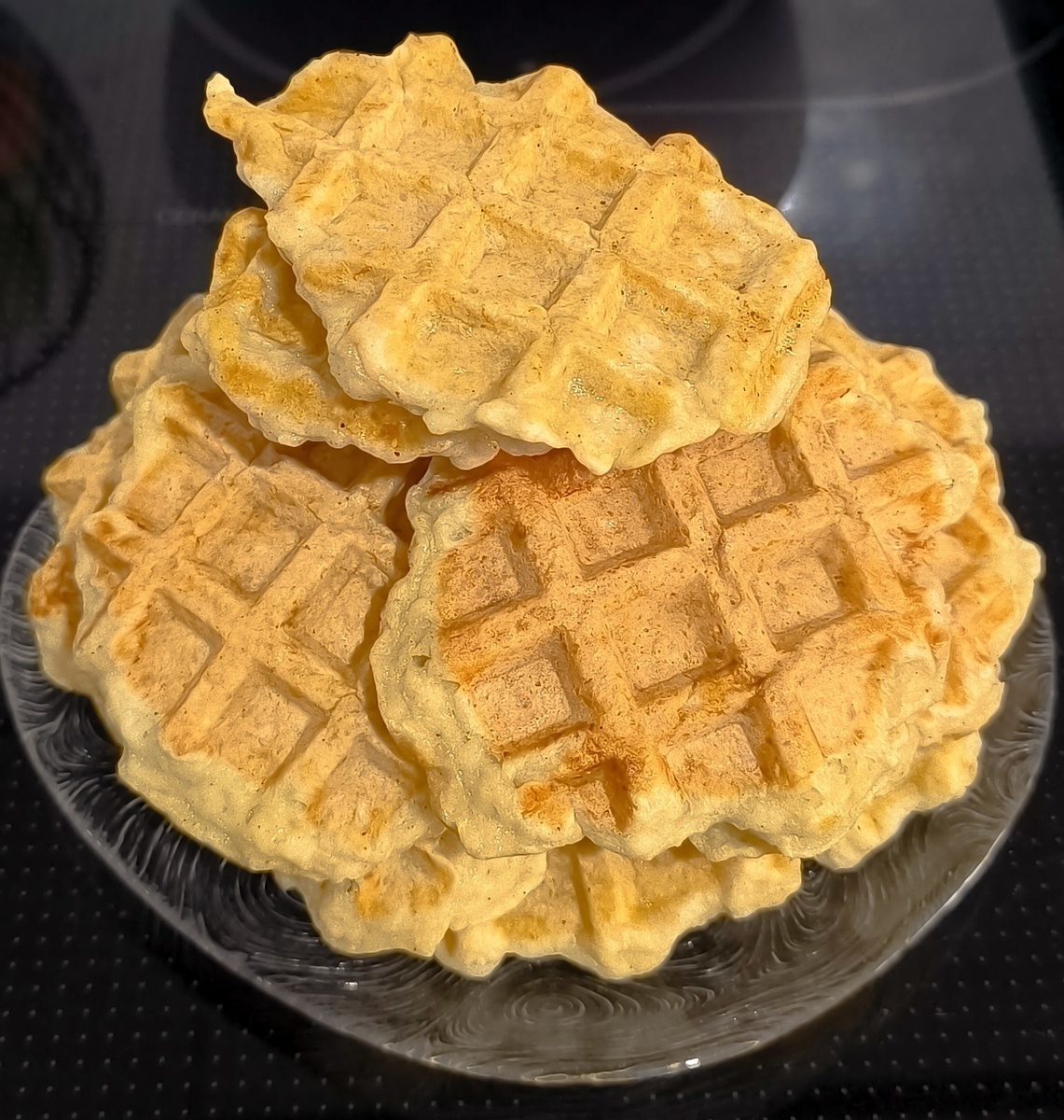 На завтрак как и планировала напекла куриных вафель, получилось на удивление много, хватило на 2 дня завтраков.