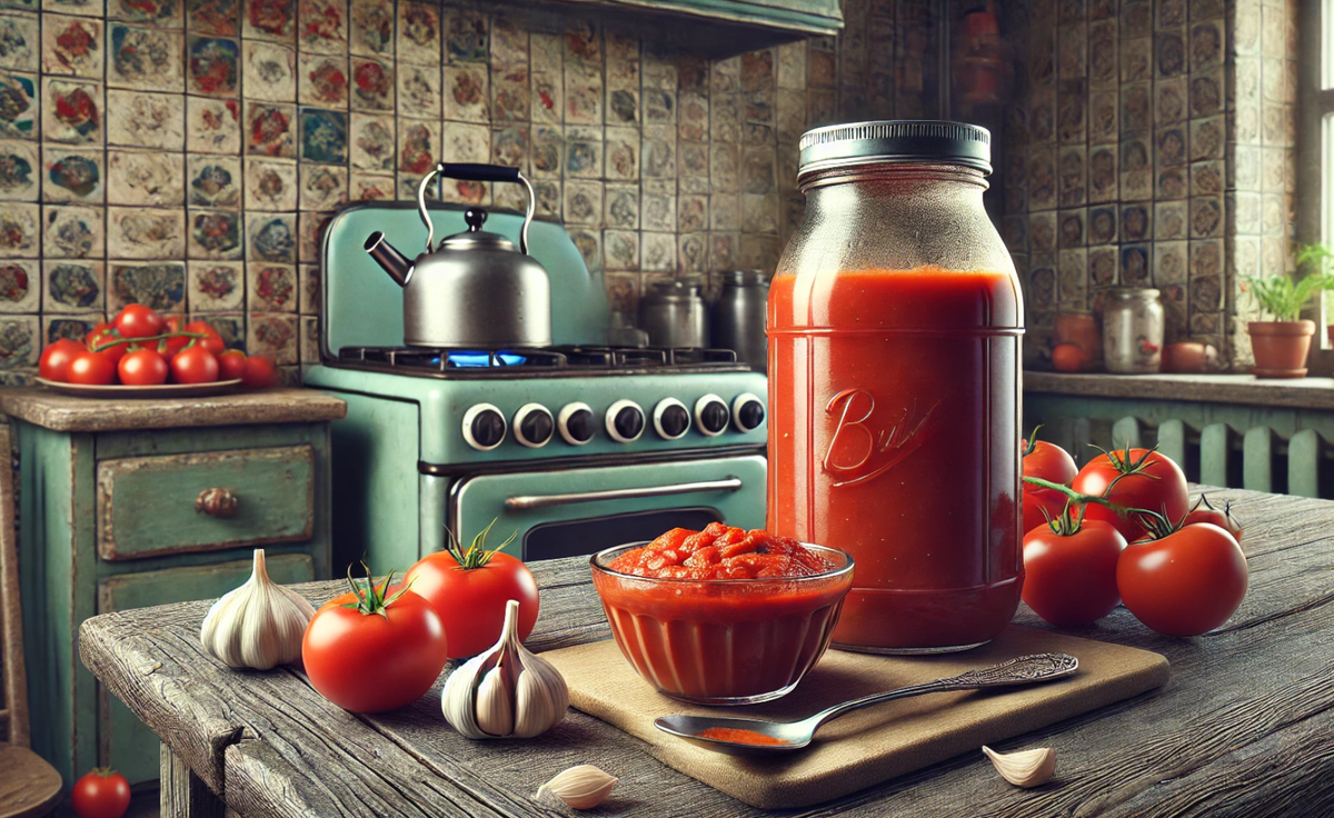 Самый популярный «кетчуп» того времени – это домашняя томатная подлива. Её готовили практически в каждом доме. В кастрюле тушили тёртые помидоры с чесноком, луком, уксусом, сахаром и лавровым листом. Получалось густое ароматное пюре, которое не хуже покупного кетчупа.