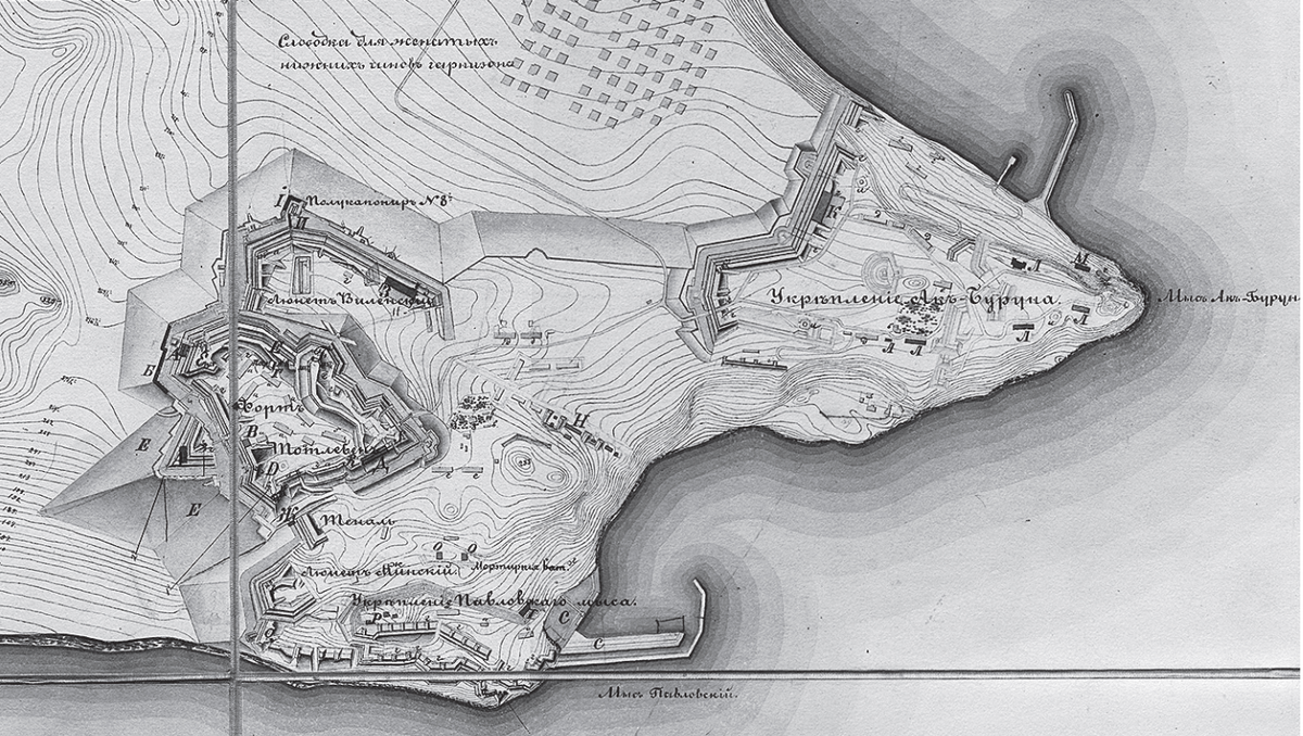 На планах размещения новых нарезных орудий на береговых укреплениях Керченской крепости русской является только фамилия чертежника. Основной план, подписан генерал-адъютантом Тотлебеном, артиллерии генерал-лейтенантом Ферсманом и военным инженером генерал-майором Натом (я ни на что не намекаю, но "странное" совпадение налицо).