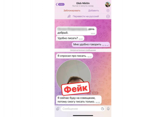 Злоумышленники ведут переписку от имени Глеба Никитина. Также они присылают видео, на котором якобы изображен глава региона. Для этого может быть использована технология дип-фейк, сообщил в пресс-службе областного правительства. Нижегородцев призвали блокировать фейковый аккаунт в случае возникновения подобной переписки.