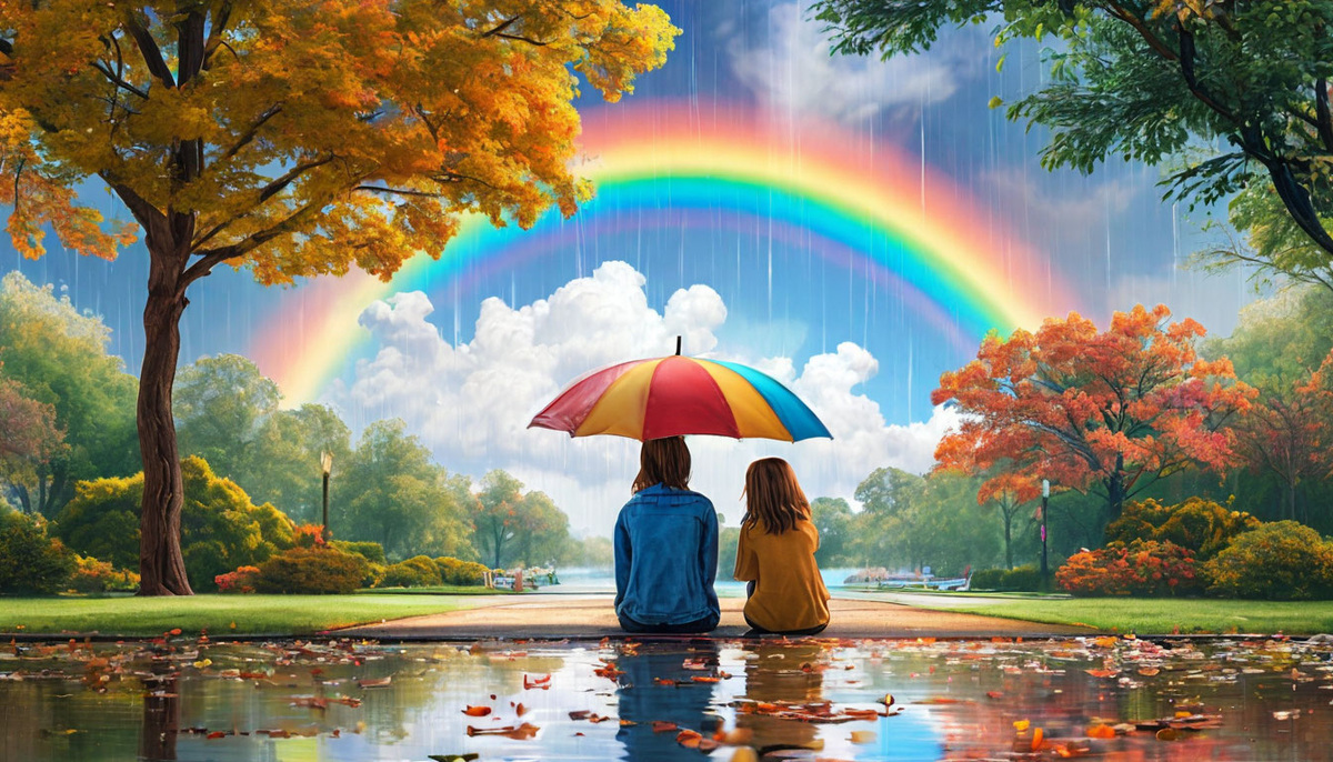 — Мам, смотри, радуга! — малыш тянет меня за руку, показывая на небо после дождя. — Как она появилась? Я улыбаюсь и сажаю его на скамейку. — Видишь, солнышко выглянуло после дождя? Его лучики попадают в капельки воды, которые еще летают в воздухе. И тогда свет, как волшебник, разделяется на цвета: красный, оранжевый, желтый… Все семь, как в твоей раскраске! Получается яркая дуга. Это будто небо надело разноцветное ожерелье. А если повезет, рядом появится вторая радуга — ее сестренка, но бледнее. В сказках говорят, что у ее конца спрятан горшок с золотом. Может, когда-нибудь найдем? Он смеется, но тут грохочет гром. Мальчик прижимается ко мне. — Не бойся, это просто тучи играют в догонялки, — глажу его по голове. — Видишь вспышки? Это молнии. Внутри туч есть льдинки и капли. Когда они сталкиваются, появляются искорки — как когда ты трешь ножки о ковер и потом хлопаешь братика. Только молнии гораздо сильнее! Они греют воздух так, что он взрывается — вот откуда гром. Но если гроза близко,