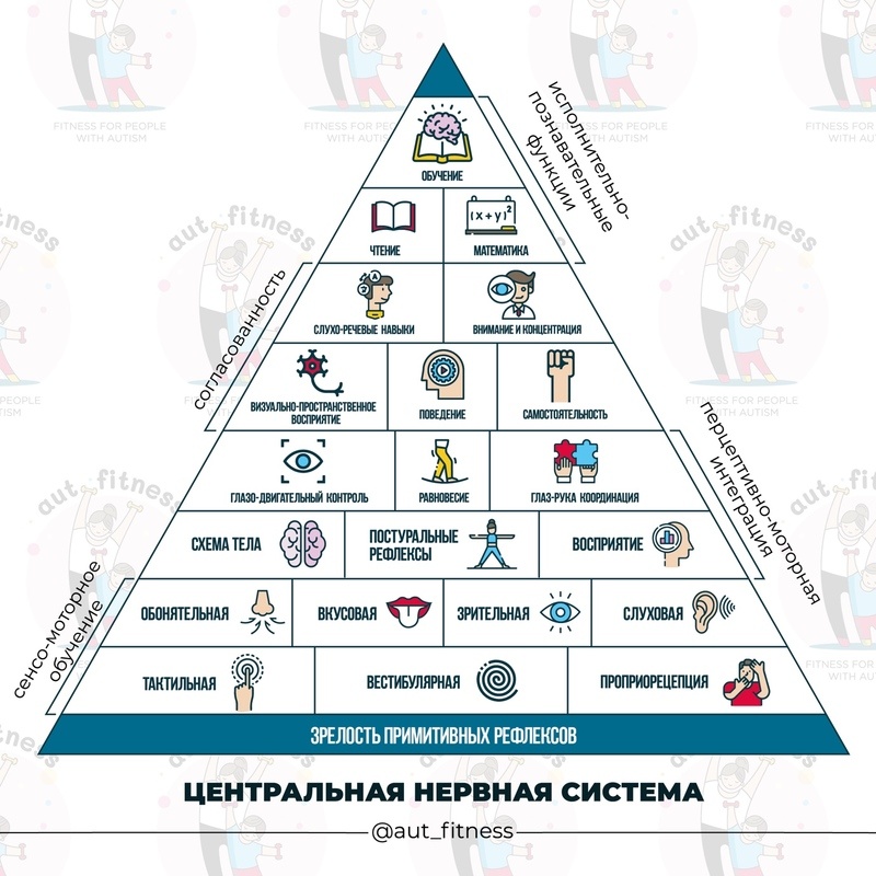 Каждый из кирпичиков этой пирамиды, начиная от фундамента, влияет на то, как успешно будет проходить обучение ребёнка. Поэтому так важна качественная диагностика развития ребёнка, выявление дефицитов и своевременная работа над их компенсацией.