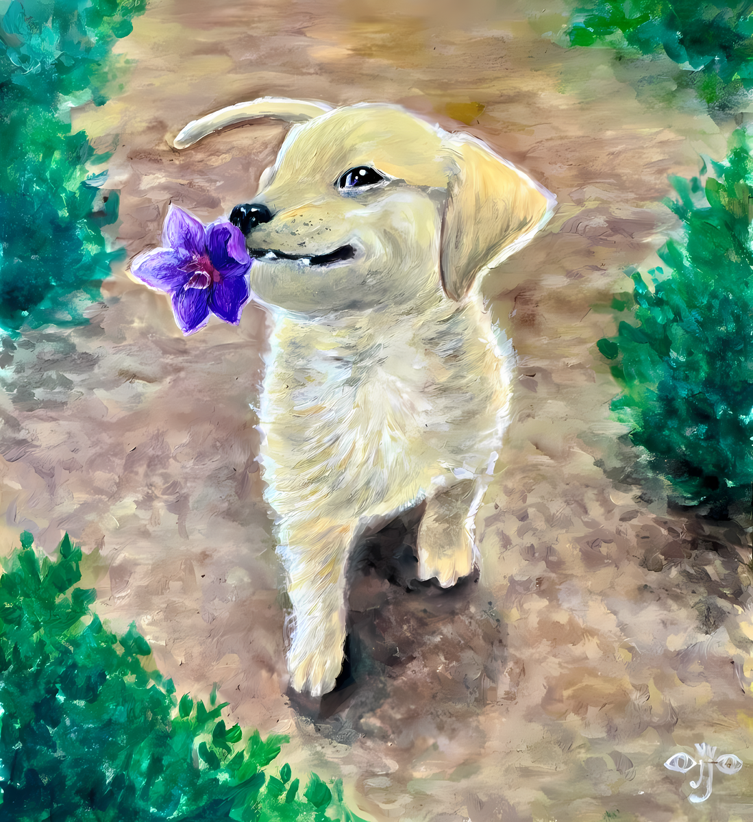 Щенок остановился, взглянув на меня, и цветок, который он держал, мягко упал к моим ногам. Он помахал хвостом и побежал дальше, потеряв интерес.