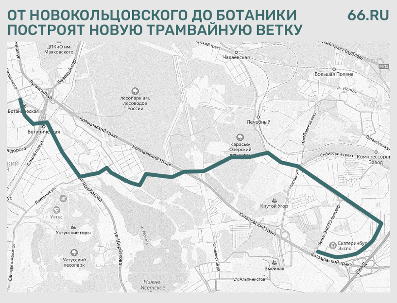 Между Ботаникой и Новокольцовским построят трамвайную ветку. Карта