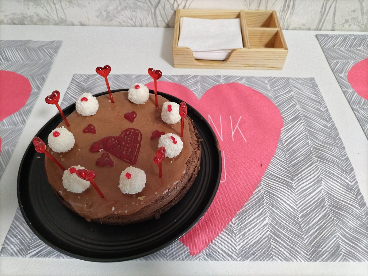 У нас сегодня с утра было -26. Начальным классам объявили актировку. Так что девчонки учились онлайн. Первым уроком был английский, Марго с Елизаветой занимались вдвоем с учительницей. Получили пятерки, но мы вчера вечером готовились. К математике еще один мальчик подключился. Почти индивидуальные занятия получились :)))) А я поставила в мультиварке печься тортик и побежала сдавать Полины анализы. Потом забежала в магазин, взяла бумажные тарелочки, стаканчики, трубочки. Пару шоколадок, сосиски и нарезку для пиццы. Пришла домой, достала торт, украсила. Приготовила декор для стола и пошла будить Полинку. Съездили с ней сдали анализы, забежали в поликлинику к инфекционисту. Дома взялась за готовку. Вчера смотрела новые рецепты, но что-то ничего не понравилось. Так что оставила прежнее меню. Приготовила пиццу в форме сердца с маленькими сердечками из колбасной нарезки. Вначале пыталась формочкой выдавать, но врезать ножницами получилось быстрее. Булочки с сосиской в форме сердечка.