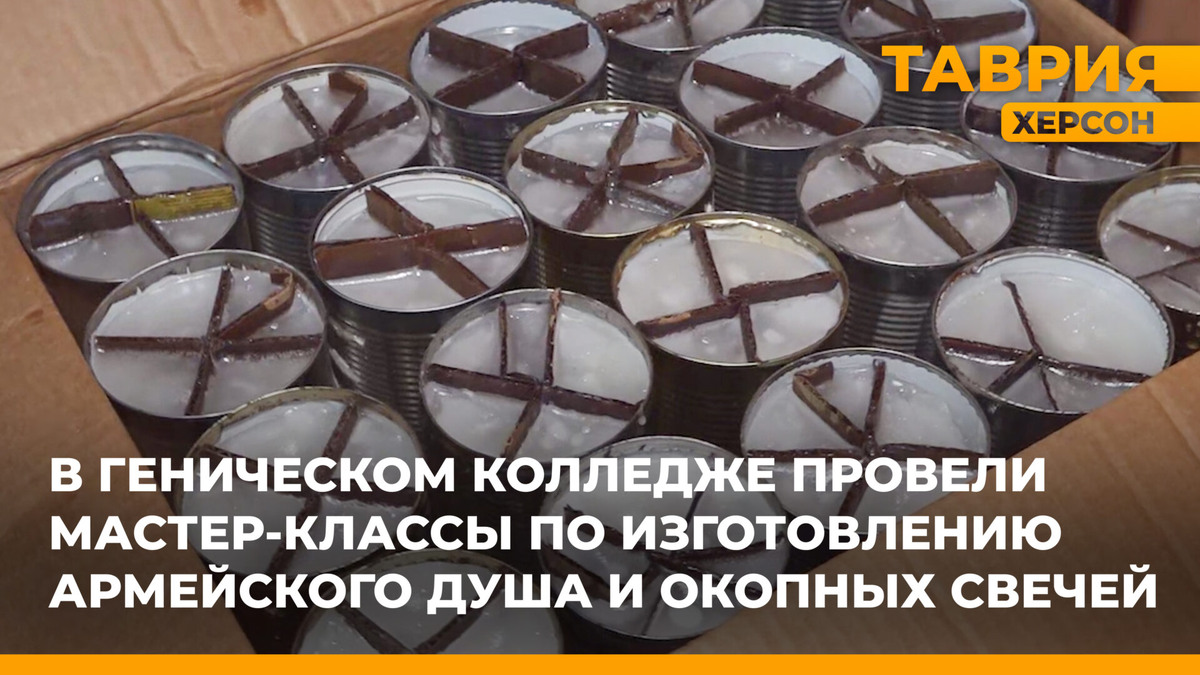 В Геническом колледже сферы обслуживания провели мастер-классы по изготовлению сухого армейского душа и окопных свечей. К помощи бойцам спецоперации присоединилось и региональное отделение партии «Единая Россия». Активистки проекта «Старшее поколение» связали для военнослужащих теплыё вещи. Для изготовления сухого душа используют мягкую ткань дарнит: её разрезают на небольшие кусочки, затем пропитывают специальной очищающей жидкостью. В зип-пакет также кладут небольшое полотенце и инструкцию. Перед использованием ткань нужно смочить небольшим количеством воды, вспенить, нанести на загрязненные участки тела и вытереть насухо. Студенты быстро освоили процесс и за несколько мастер-классов уже изготовили 100 комплектов сухого душа и более 70 окопных свечей. На базе регионального отделения партии также готовят к отправке первую посылку. Активистки решили связать для защитников теплые шерстяные носки и другие необходимые вещи. Пряжу принесли из дома. Женщины стараются вязать каждую свободную