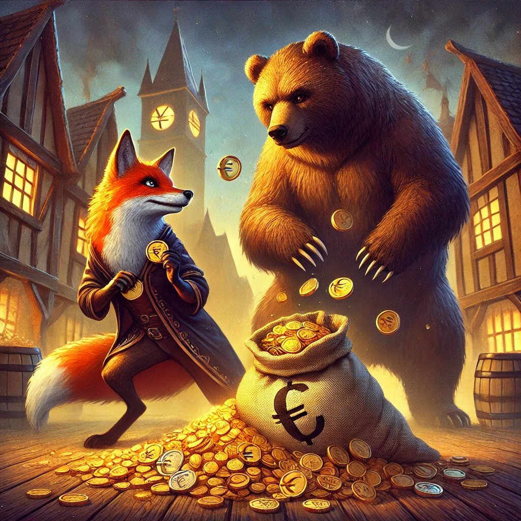 А Евро — важный, статный, весь в блеске, как будто с обложки глянцевого журнала. Жили они на одном рынке, который назывался Мировая Экономика. И всё бы ничего, да только однажды заспорили они, кто из них важнее да, кто больше прав имеет и кому в этом экономическом хоре солистом быть.