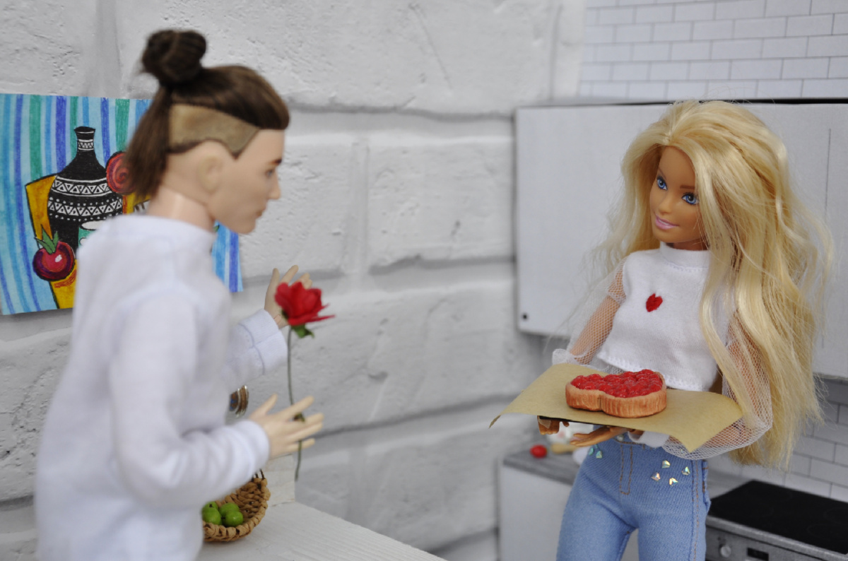 В честь Дня всех влюблённых Барби захотела испечь пирог с клубникой в форме сердца. Она делала это впервые, но с любовью и хорошим настроем, поэтому пирог удался! И когда Джон вернулся домой с подарком для своей любимой, то сразу ощутил потрясающий аромат! - Вот это да! - Джон зашёл на кухню как раз, когда Барби достала своё произведение искусства из духовки. - Сюрприз! Кажется у меня получилось! Надеюсь, на вкус тебе тоже понравится! - радостно ответила Барби. - Если честно, мне даже жалко его резать… - Значит, будем сидеть и смотреть на него? - Нет! Пойдём в комнату, пока он остывает! Там тебя тоже ждёт сюрприз! - Любимый!!! Интересно, что там… - Открывай же! - Ах…Какая прелесть, Джон! - первым делом Барби достала из коробки белоснежные, мягкие и пушистые варежки. - Ой, а тут что-то написано… «С теплом и любовью из России, от Евгения Зимина.» Ничего себе! Так…А это что…- Барби была очень удивлена… - Оно восхитительное! Что сказать…У моего Евгения прекрасный вкус! Я в востор