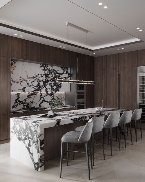 Современные тенденции дизайна интерьера диктуют большие открытые пространства, лаконичную мебель, расставленную ближе к центру, множество функциональных зон и источников света. В таких условиях кухонные острова стали популярным элементом, который не только украшает пространство, но и делает его более функциональным. Кухонный остров – это независимо стоящая часть гарнитура, которая располагается в центре комнаты или в центре функциональной зоны, обычно отделяя кухню от гостиной. Установка кухонного острова – это прерогатива больших квартир или помещений с открытыми пространствами. В маленькой комнате дополнительное место для острова организовать будет сложно и не всегда нужно. В просторных помещениях остров станет отличным решением, обеспечивая удобное разграничение зон кухни и столовой или гостиной. Кухонные острова могут быть мобильными или стационарными. Они используются для: Кухонный остров подходит для всех стилей – от американской классики до лофта и прованса. Чаще всего остров по