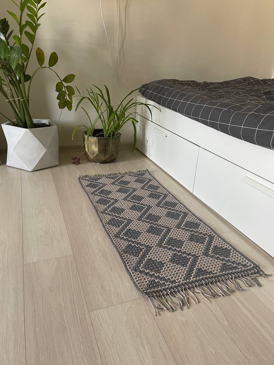 Ковер-дорожка – универсальный предмет домашнего декора, связать который можно очень быстро. Небольшой и стильный – он станет украшением вашей спальни, прихожей, ванной комнаты, детской и даже кухни. А часто, кстати, такие ковры-дорожки вешают на стену как панно или используют в качестве накидок на кресла. В курсе вы найдете 18 схем, в основе которых – классическая геометрия, которую будет легко встроить в любой интерьер. Разумеется, эти орнаменты вы сможете использовать не только в коврах, но и в пледах, просто увеличив количество раппортов. Схемы рассчитаны и отцентрованы исходя из классического размера ковра-дорожки (100*50 см), но все, конечно, зависит от выбранного вами материала. Подробные рекомендации и расчеты по выбранному мною хлопковому шнуру вы найдете в курсе. Орнаменты подобраны таким образом, чтобы гармонично смотреться и в горизонтали, и в вертикали. Участникам группы предлагается присоединиться к чату поддержки в Telegram, где можно зарядиться вдохновением, посмотреть,