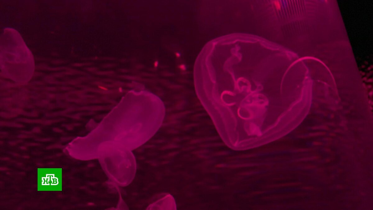 [ Смотреть видео на сайте НТВ ] В Центре океанографии и морской биологии на ВДНХ появились новые аквариумы с медузами. В «Москвариуме» на ВДНХ сделали подарок горожанам и туристам: в Центре океанографии и морской биологии открыли новые аквариумы с медузами. По мнению сотрудников, экспозиция станет точкой притяжения для всех влюбленных. Футуристическое пространство идеально подходит для свиданий и романтичных фотографий. Там в полумраке можно прогуляться между рядами больших стеклянных колб, где медленно плавают около 200 медуз. От подсветки их прозрачные тела меняют цвет. Ирина Мейнцер, заместитель генерального директора Центра океанографии и морской биологии: «Сейчас на стадии запуска здесь содержатся два вида медуз — это аурелия ушастая и корнерот. Собственно, все медузы, представленные здесь, размножаются у нас в „Москвариуме“. Впоследствии мы будем плавно заменять в цилиндрах аурелий на какие-то другие виды». При этом в «Москвариуме» не только проходят свидания, с недавнего времени