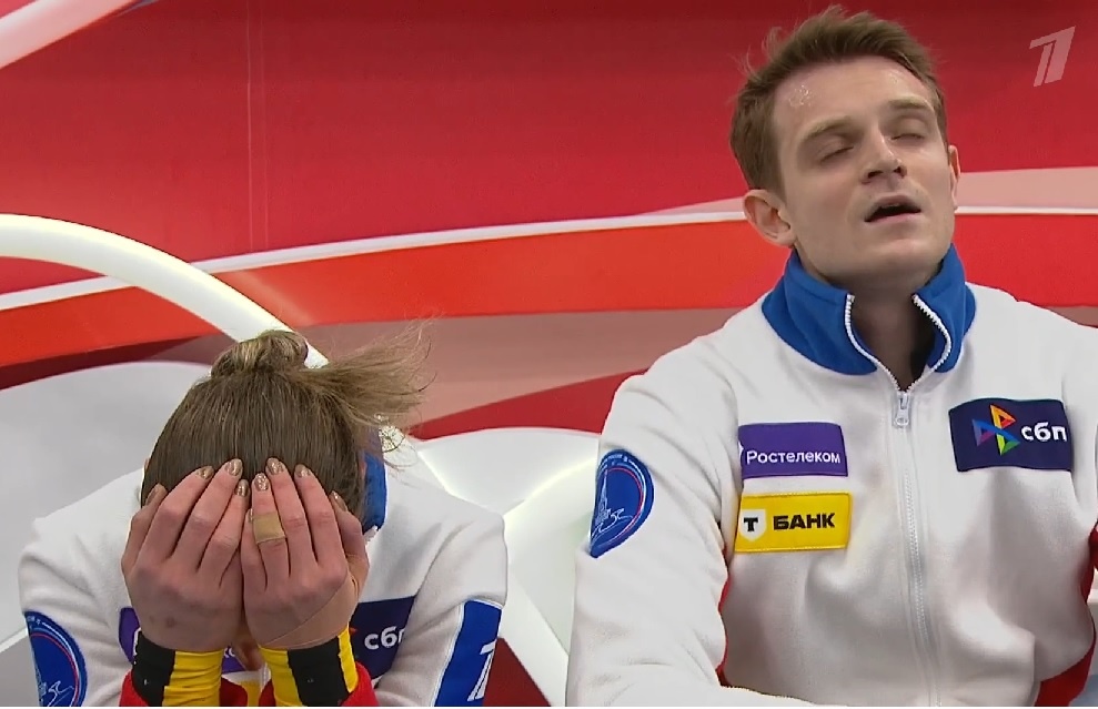 На Саше итак не было лица после проката. В кике она сидела крайне расстроенной. Ну а Дима даже ухмыльнулся, увидев оценки.