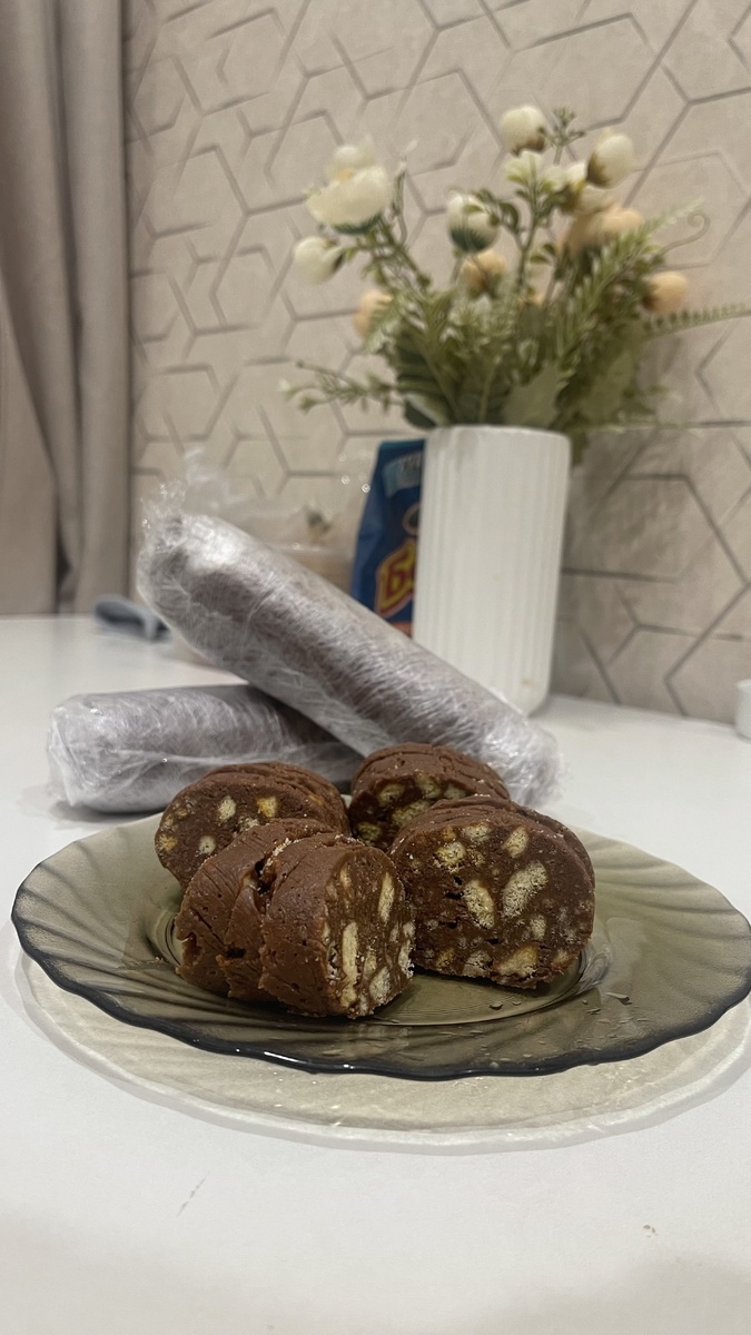 Сегодня День Святого Валентина. И мой старший сын признался, что любит ЕЁ….😳…шоколадну колбасу… Я была бы не я, если пост был бы не про колбасу 😂🫶 Сделали аж 6 шт. Пока я заворачивала все 6 шт в пленку, думала « и куда столько?!» А одну умяли за одно чаепитие…🤌 Вкуснотаааа…♥️ П.С. Рецептик (я думаю, что его все уже знают, но я больше для себя 😎) Ингредиенты: 400гр печенья 400 гр сгущенки (или банка) 4 ст. ложки какао порошка 1 пачка масла. Приготовление: Печенье перекладываем в пакетик и скалкой дробим, раскатывая, но не в пыль, а чтобы и кусочки небольшие все же оставались. Пересыпаем в кастрюльку (мне 1,5 литровой хватило для этого количества). Засыпаем растопленное масло, какао, и сгущенку. Мешаем. Выкладываем на пленку, формируем колбасу. Убираем в морозилку на часик-полтора. Приятного аппетита.