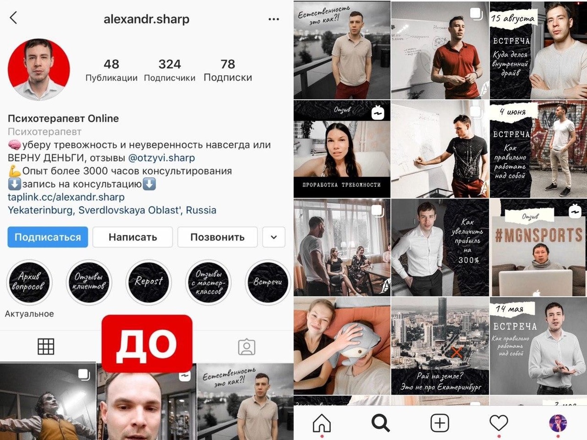 Аккаунт психотерапевта Александра Шарпа - звучная фамилия, презентабельная внешность, умение продавать свои услуги, уверенность в своей востребованности, хорошая сарафанка на его услуги.