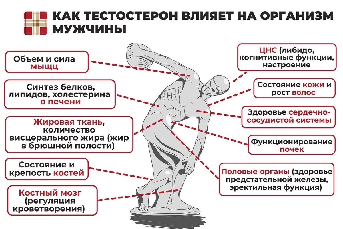 Тестостерон — главный мужской половой гормон, который играет ключевую роль в ряде физиологических процессов. Его уровень в организме напрямую влияет на здоровье, физическую форму и эмоциональное состояние мужчины. В этой статье мы рассмотрим, что такое тестостерон, как он влияет на мужской организм и что делать, если уровень гормона выходит за норму.Тестостерон — главный мужской половой гормон, который играет ключевую роль в ряде физиологических процессов. Его уровень в организме напрямую влияет на здоровье, физическую форму и эмоциональное состояние мужчины. В этой статье мы рассмотрим, что такое тестостерон, как он влияет на мужской организм и что делать, если уровень гормона выходит за норму. Тестостерон — это андрогенный гормон, который производится в основном в яичках, а также в небольших количествах в надпочечниках. Этот гормон отвечает за развитие мужских половых признаков, таких как рост волос на лице и теле, глубокий голос и увеличение мышечной массы. Тестостерон влияет не то
