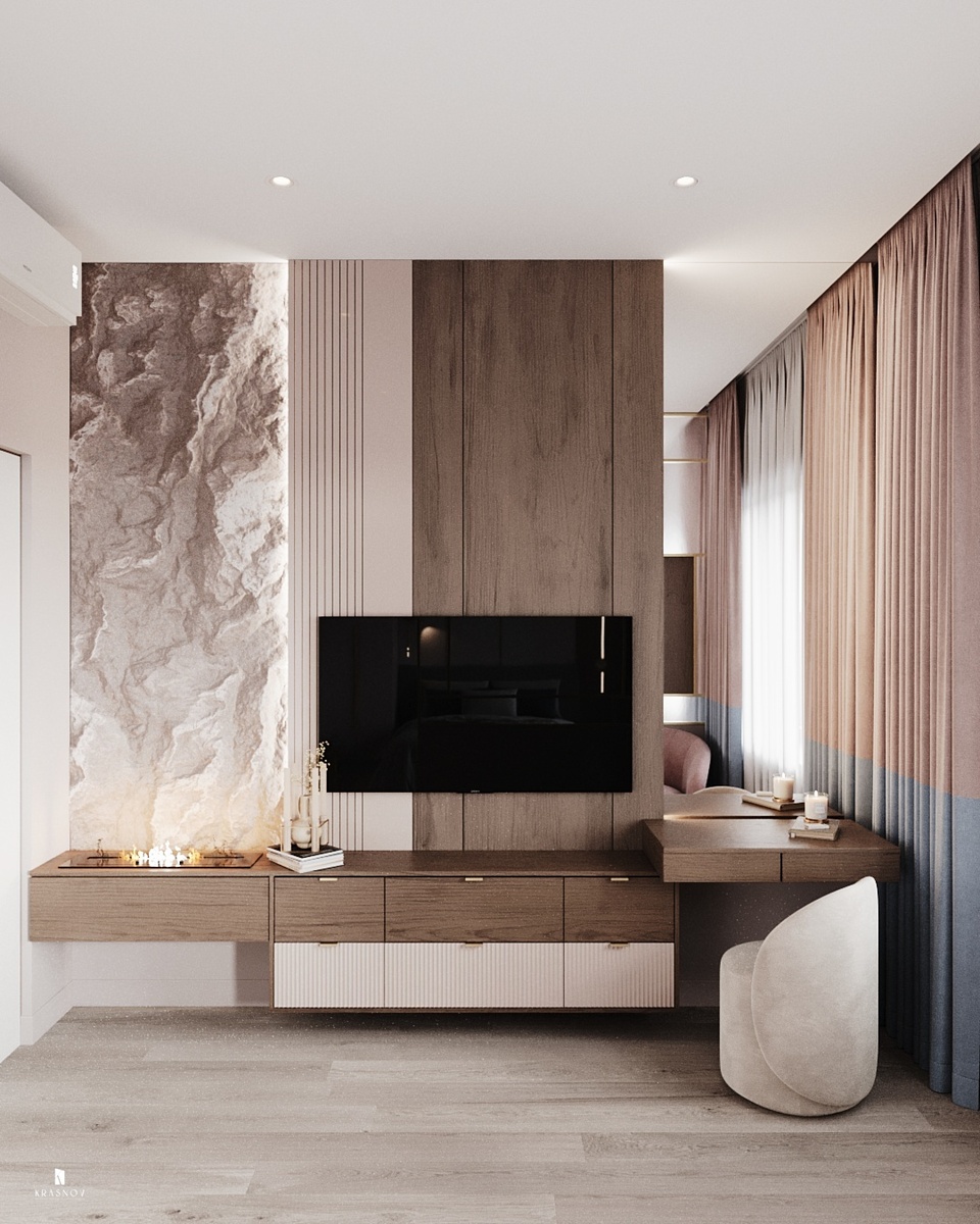 Как вам такая спальня? Поделитесь своим мнением в комментариях⤵️ Больше пользы и классных интерьеров в Телеграм канале студии krasnov_d - https://t.me/+XuhDDI9cYlo4MjIy