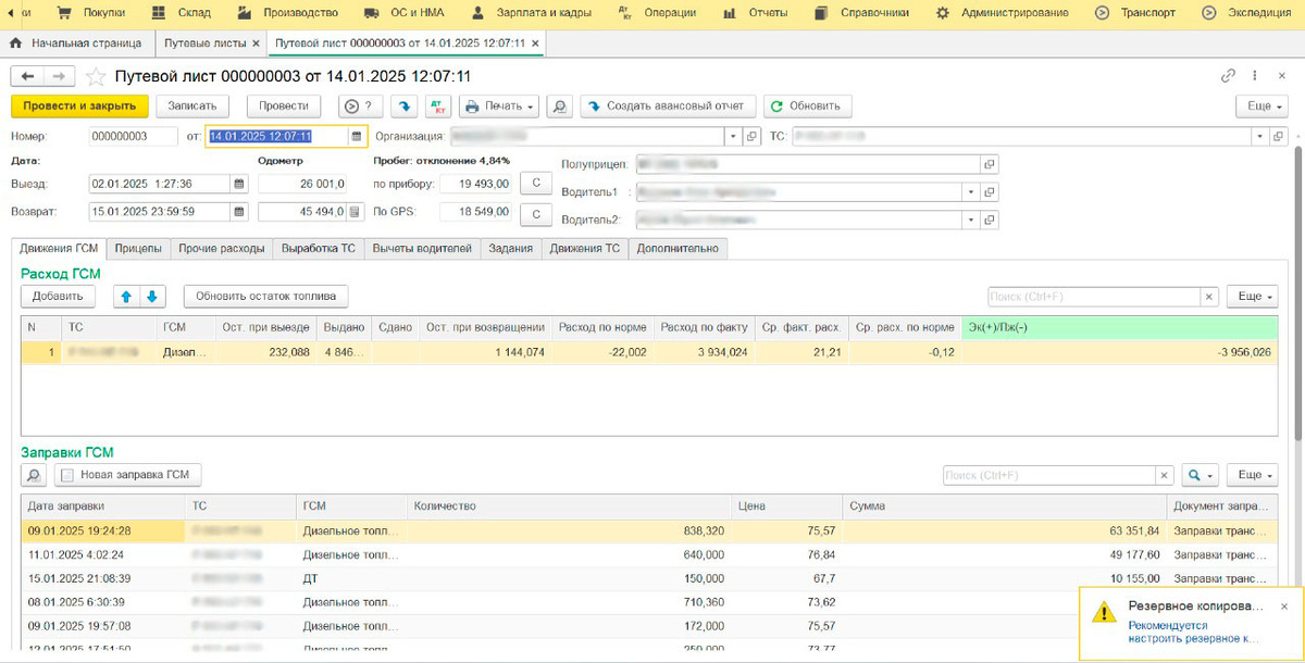 - Система сама заполняет путевой лист — водитель не тратит время на оформление, а диспетчер избавляется от рутинной работы.