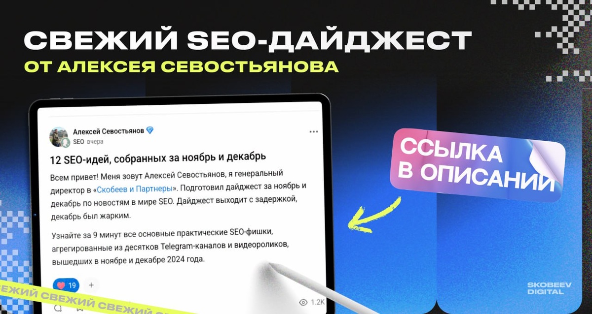 Всем привет! Меня зовут Алексей Севостьянов, я генеральный директор в «Скобеев и Партнеры». Подготовил дайджест за ноябрь и декабрь по новостям в мире SEO. Дайджест выходит с задержкой, декабрь был жарким.