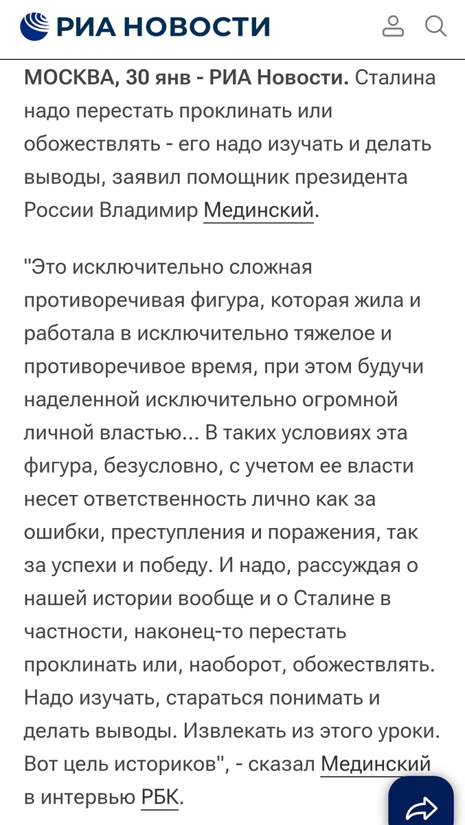 Думаю, если повеет более серьёзным бунтом, про Ленина тоже может начнут объективные вещи транслировать. Пока его всячески костерят, обвиняют. Но мнение простых людей может взять своё, и они вынуждены будут примазываться уже и к Ленину. Сложно, понимаю, ведь это у нас уже будет примазывание капиталистов к коммунистическим идеям. Но они мастера придумывать нужные пропагандистские приёмы.