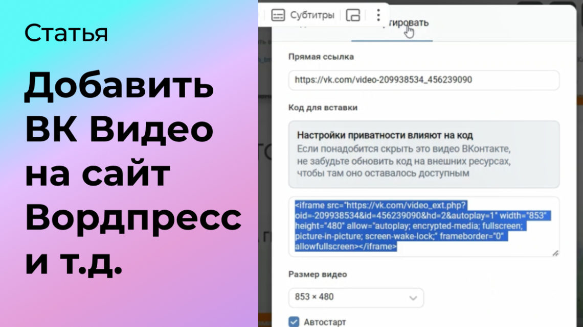 Как добавить ВК Видео на страницу сайта Вордпресс
