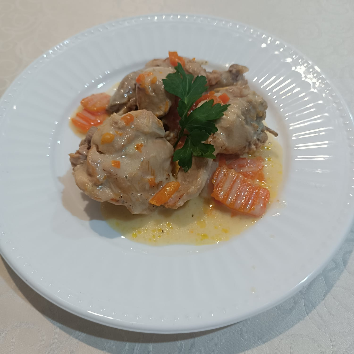 Доброе утро! Немного истории ) ... В детстве папа держал кроликов. Мы их любили, кормили клевером и кукурузой, которые заготавливали вместе с папой. Ну и ели, конечно ) Шкурки папа выделывал, из них шили шапки и даже шубки нам, детям. Из кроличьего мяса делали очень вкусные колбаски. Вкус кроличьего мяса мне нравится. Мама тушила его в очень вкусной подливе. Я тушу - не то... Я даже провела эксперимент, купила кролика и половину отдала маме . Сама потушила и маму попросила приготовить. У неё опять так же вкусно, у меня не так. Выяснилось, что у неё более зажаристо и жирно ) всё просто ) В общем каждую зиму мне хочется вкусно приготовить кролика ) Сейчас доступна масса новых рецептов, вкусов , сочетаний и ингредиентов. И я решила немного отойти от традиционного семейного рецепта ) Часто встречаются рецепты кролика со сметаной. И с вином. А так же есть рецепт в "Осознанной кулинарии" У меня получился такой вкусный сборный рецепт, я дам его, а ниже рецепт из "Осознанной кулинарии" Про