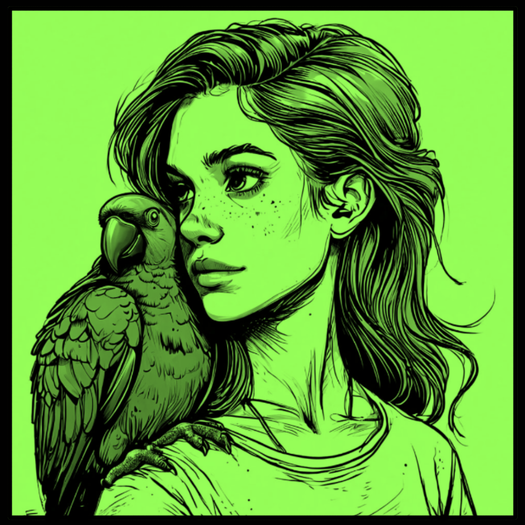У меня был попугай-эклектус по имени Гуапо, которого я купила у предыдущего владельца много лет назад. Он был ярко-зеленым с небольшими вкраплениями синего и красного, а его перья были похожи на мех. Эклектусы — отличные говоруны и подражатели, и он уже при мне издавал всевозможные звуки. Он вырос в доме, где были собаки, и в первую же ночь, когда я принесла его домой, он забрался наверх клетки и зарычал на меня, как самая свирепая собака. Первые несколько дней были тяжелыми, но в конце концов он начал привыкать ко мне, и я влюбилась в него. Он летал по дому, садился мне на плечо и проводил со мной время, а когда уставал, то улетал обратно в клетку, чтобы поесть или посидеть на своем любимом месте для наблюдения. Он прожил со мной около полутора лет, и в конце концов я нашла ему пару женского пола, чтобы у него была подружка. Она не была умной птицей, и я никогда не привязывалась к ней так, как к Гуапо.