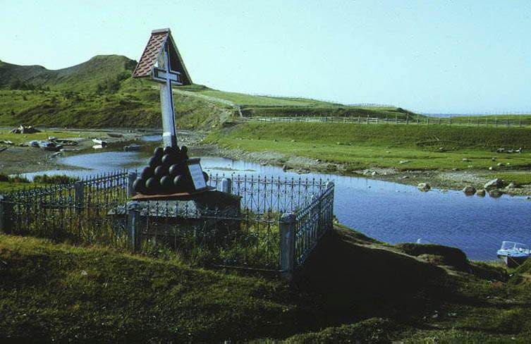 А памятник в виде железного русского креста и 33 английских ядер стоит и сейчас посреди деревни Лямца.