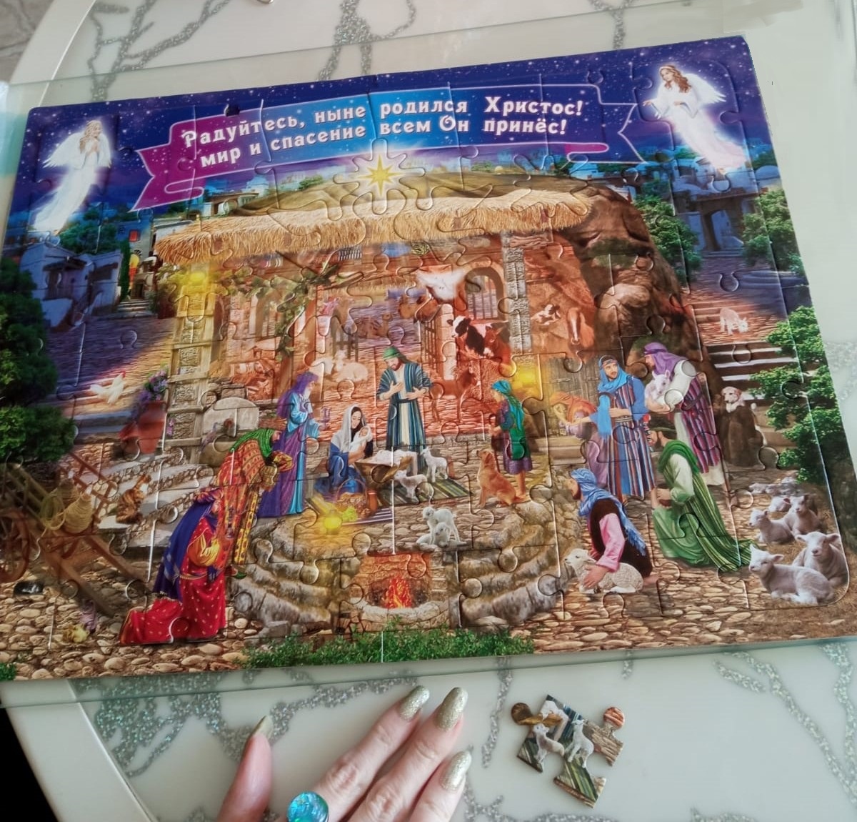 В новогоднем подарке были пазлы на тему Рождества, я только недавно их собрала, какая красивая картинка получилась. Спасибо!
