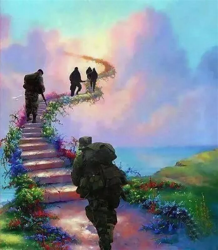 - Той тропой я сто раз проходил, И врагу много бед я доставил , Но, и враг – не дурак! Он следил И на тропке той мины поставил! А мы вместе прошли три войны, Не похожи в бою на котят... Но, тот взрыв, как бредовые сны, Раскидал и меня , и ребят... Я очнулся, звенит тишина, Я кричал и не слышал свой крик, Отступила куда-то война... Только рядом какой-то старик... Он неспешно мне молча кивнул, В серебре седины головой И прищурившись, мне подмигнул, Мол, давай-ка, служивый, за мной... Я пошел по колено в грязи, Мне открылась за ним, вдруг дорога... Звон в ушах: «Бог, помилуй! Спаси!» Вдруг резные ворота чертога... Видно, взрывом с петель сорвало, То ль туман, то ли дым там клубится, В том тумане не видно село, А ворота, как будто граница... Я взвалил те врата на себя! По колено вошли в землю ноги! Я тащил те ворота, хрипя, Хоть не видел от пота дороги! Дотащил я и в петли их вдел! И поймал взгляд улыбчивый деда, Он сказал мне: «Внучок! Ты сумел! Значит ждёт вас, как прежде, Победа!» Я в ворота успел заглянуть.... Красота, нет которой цены! Я увидел – сумели шагнуть В край красивый мои пацаны .... А старик вдруг меня оттолкнул, И сказал: «А тебе, пока рано! Очи я, вдруг, свои разомкнул, Степь пустая и ноют лишь раны... И я полз! В земь вцепляясь зубами! Я сумел, доползти до своих! Я воюю, чтоб там с пацанами, Повстречаться у врат тех резных!