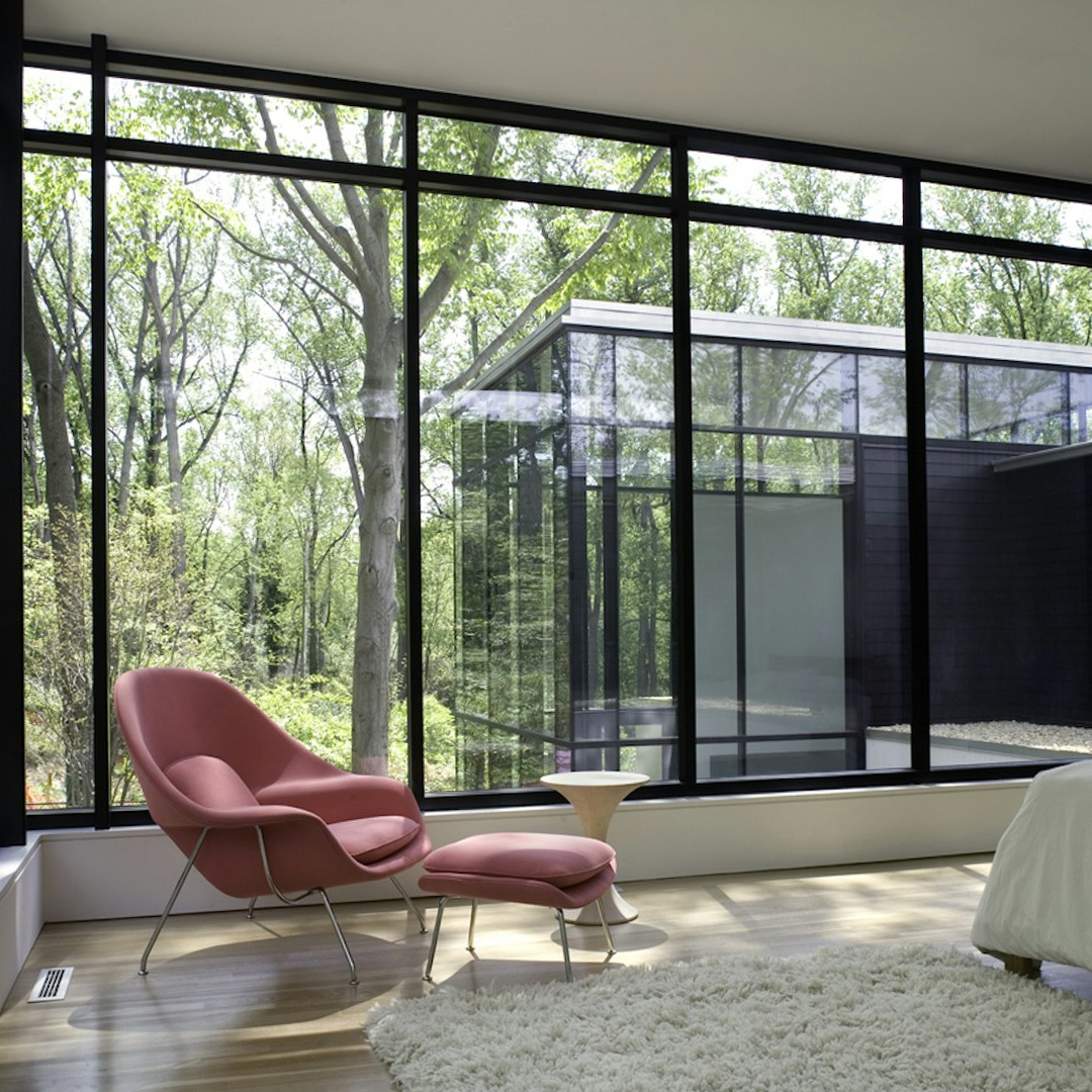 - Модерн. Панорамные окна и раздвижные двери, много стекла и легкости.
