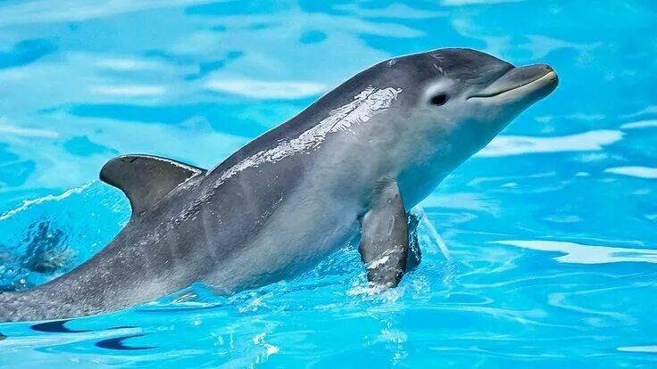 Дельфины — водные млекопитающие инфраотряда китообразных. Дельфины питаются мелкой рыбой. Тело дельфина очень хорошо приспособлено для движения в воде и позволяет ему очень быстро плавать. Этому также помогает очень эластичная и гладкая кожа, благодаря маслянистым выделениям, облегчающим скольжение в воде. Длина дельфина составляет 2-3,7 м вес 150-300кг вляет 2,3–3,7 м, вес — 150–300 кг.