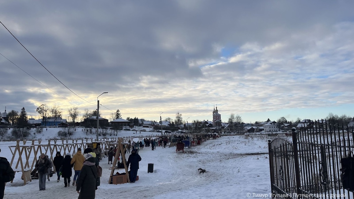 Всего два часа пути — и вот мы въезжаем в зимний Суздаль. Город встретил нас пасмурным утром, лёгким снежком и немноголюдной главной улицей. Это и понятно: пока ещё рано — основной поток туристов обычно приезжает к обеду. Так впоследствии и оказалось. Мы специально приехали рано, чтобы успеть «проскочить» экскурсионные группы, и это оказалось верным решением.